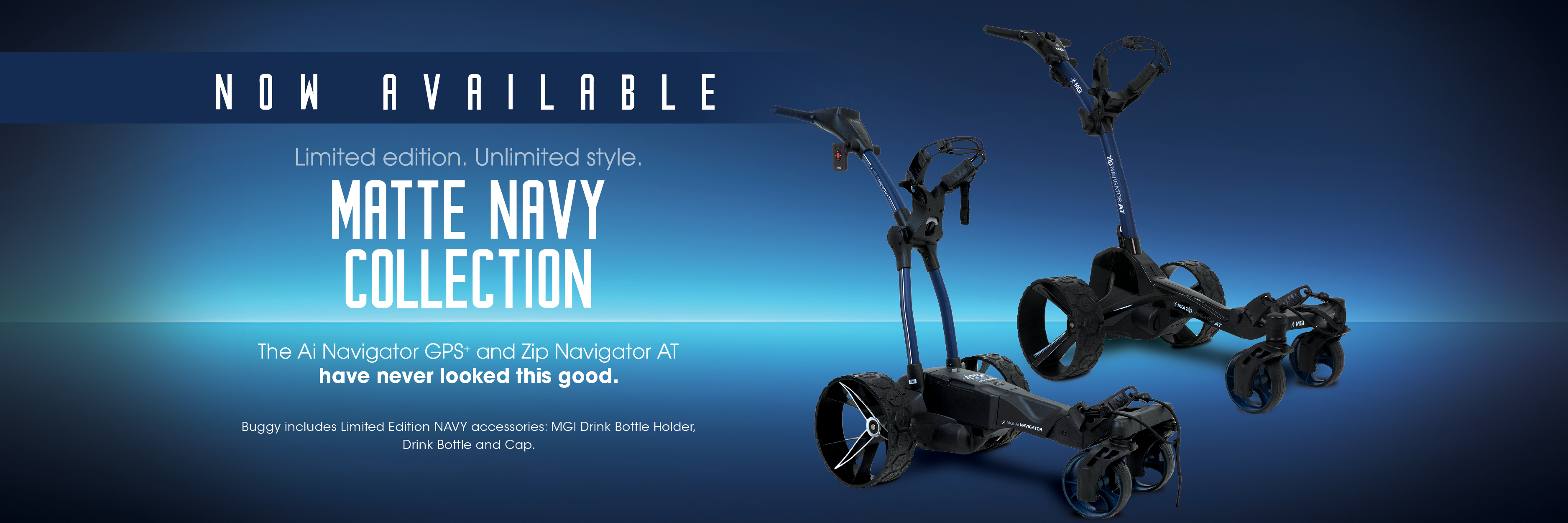 All MGI Golf electric golf buggies run on lithium batteries, which are light and recharge quickly. You’ll get the best life by giving it a top-up charge after each game.