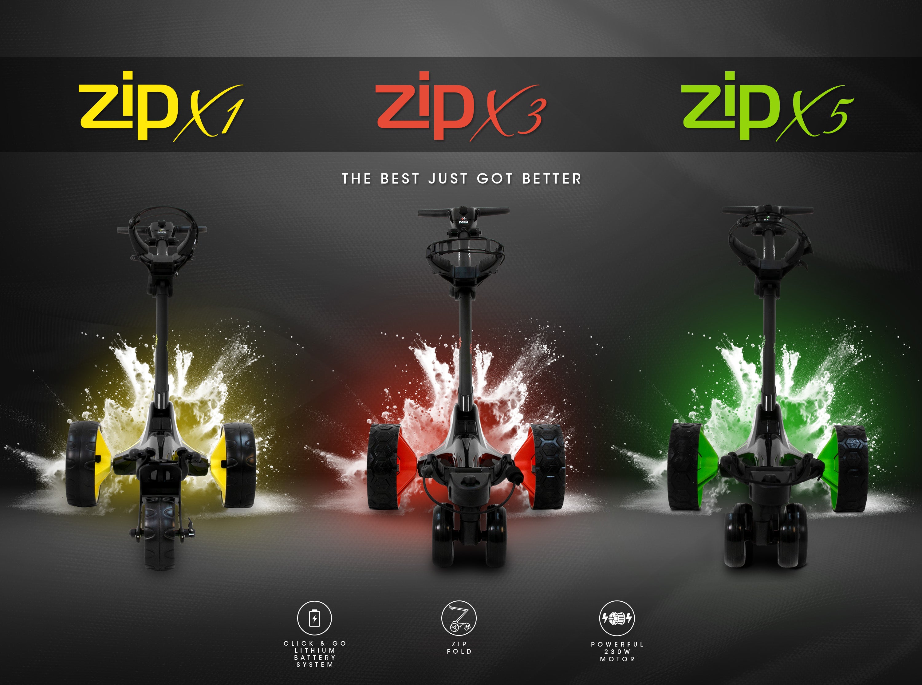 Introducing MGI’s new models Zip X1, X3 and X5 have just arrived! Showcasing a seductive matte black gloss coloured frame, complimented by a striking black gloss top box, chassis cover and battery. Packed full of desired features the new models will turn heads on any golf course!